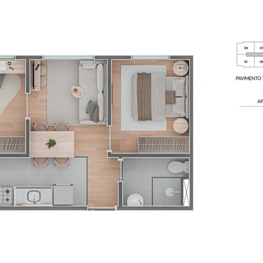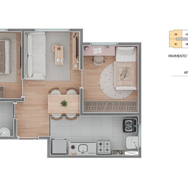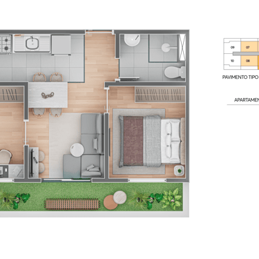 O empreendimento oferece apartamentos de 2 quartos com opção de varanda ou área privativa, perfeitos para quem busca mais qualidade de vida. Localizado na região do Bosque dos Ipês, Zona Sul.